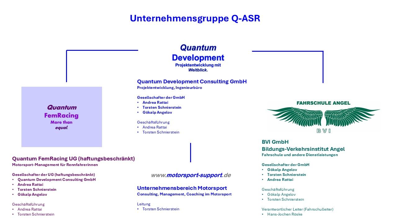 Am 7. März 2024 wurde das Projekt QFR Quantum FemRacing aus dem Unternehmensbereich Motorsport der Quantum Development Consulting GmbH ausgegliedert und als Tochterunternehmen Quantum FemRacing UG (haftungsbeschränkt) gegründet.